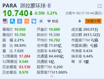 格隆汇8月27日|派拉蒙全球(PARA.US)跌超5.2%,报10.74美元。消息面上,美国资深媒体高层Edgar Bronfman Jr.牵头财团在美国时间周一(26日)晚间宣布退出竞购派拉蒙全球,派拉蒙全球即时结束与潜在第三方磋商的期限,并预期Skydance Media明年上半年完成对其收购。此外,派拉蒙环球正寻求出售12家非核心电视台,并已聘请一家银行帮助该公司探索各种选择。